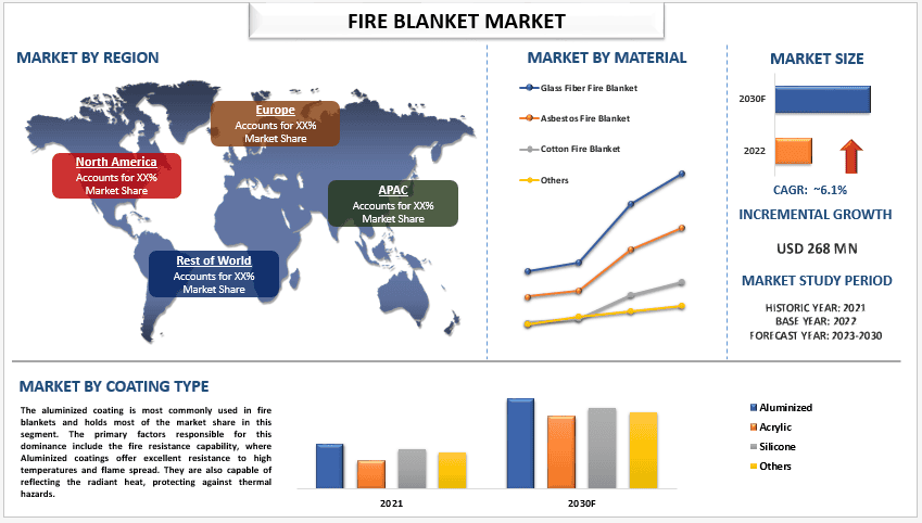 According to the UnivDatos, the growing urbanization and stringent government laws for fire safety will drive the scenario of Fire Blankets and as per their “Fire Blanket Market” report, the Market was valued at USD 268 Million in 2022 and expected to grow at CAGR of 6.1% during the forecast period from 2023 - 2030 to reach USD 430.38 Million by 2030.