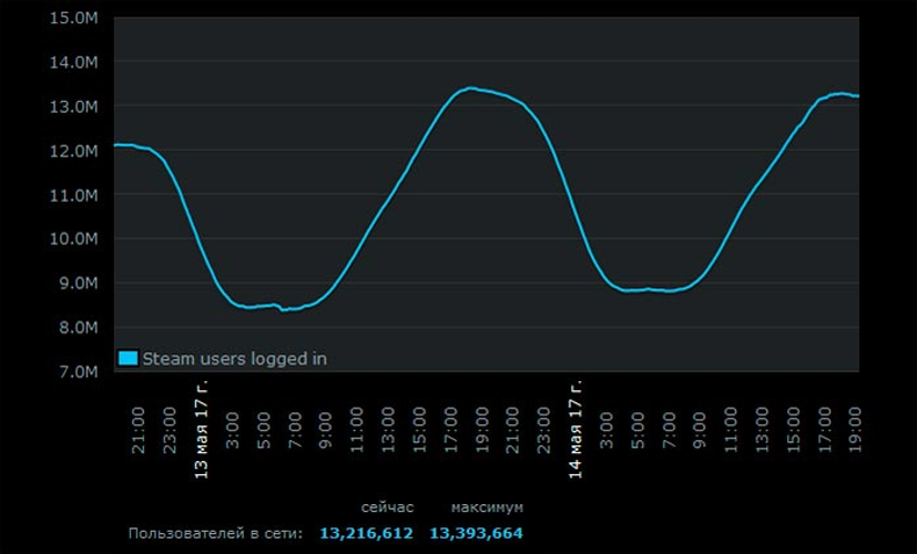 График отражает количество одновременно активных участников в течение 48 часов, демонстрируя периоды пикового и минимального спроса.