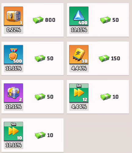 After 675 refresh cycles, the likelihood of each item appearing can be calculated to understand their overall chances of being showcased.